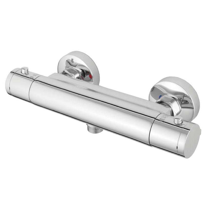 Termostatická sprchová batéria- vysokocitlivý termočlánok VERNET (FR), fix teploty 38st. C, stop ventil proti popáleniu pri zmene tlaku studenej vody v systéme.