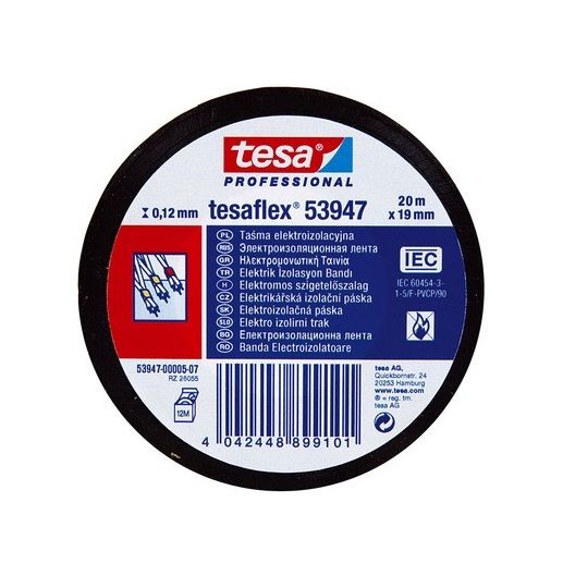 Páska tesa® PRO tesaflex®, elektroizolačná, lepiaca, sPVC, 19 mm, čierna, L-20 m- Páska na izolovanie vodicov a káblov, opravy, ochranu. – Tepelne odolná až do 90 °C. – Prierazné napätie 5 000 V Balenie obsahuje 10 ks.. Číslo modelu Strend Pro: 2171055A