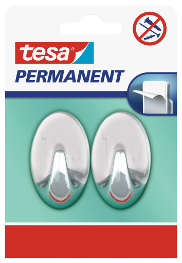 Tesa permanent hooks sú praktické obdĺžnikové háčiky väčšie L, oceľové vhodné na trvalé vešanie. Háčiky umožňujú spoľahlivé držanie ľahkých predmetov na rôznych povrchoch. Háčiky možno jednoducho nalepiť bez vŕtania alebo bez zatĺkania klincov. Sú vhodné na dlaždice, drevo, sklo, plasty a ďalšie hladké povrchy. Háčik nie je vhodný na polystyrén, penové hmoty, plochy s nelepivou úpravou, porézne materiály. Balenie obsahuje 2 ks.