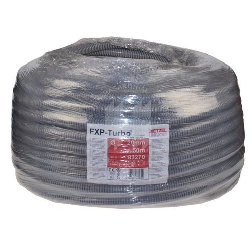 Chránička na káble s označením FX 20, 320N/5cm, -5až60°C, PVC. Balenie obsahuje 50m, uvedená cena je za 1m.Vlastnosti:Vlnitá pancierová rúrka z PVC,samozhášavá. Vhodná pre stredné mechanické zaťaženie. Teplotný rozsah : -25°C až +60°C Mechanická záťaž : 750N. Farba : sivá.