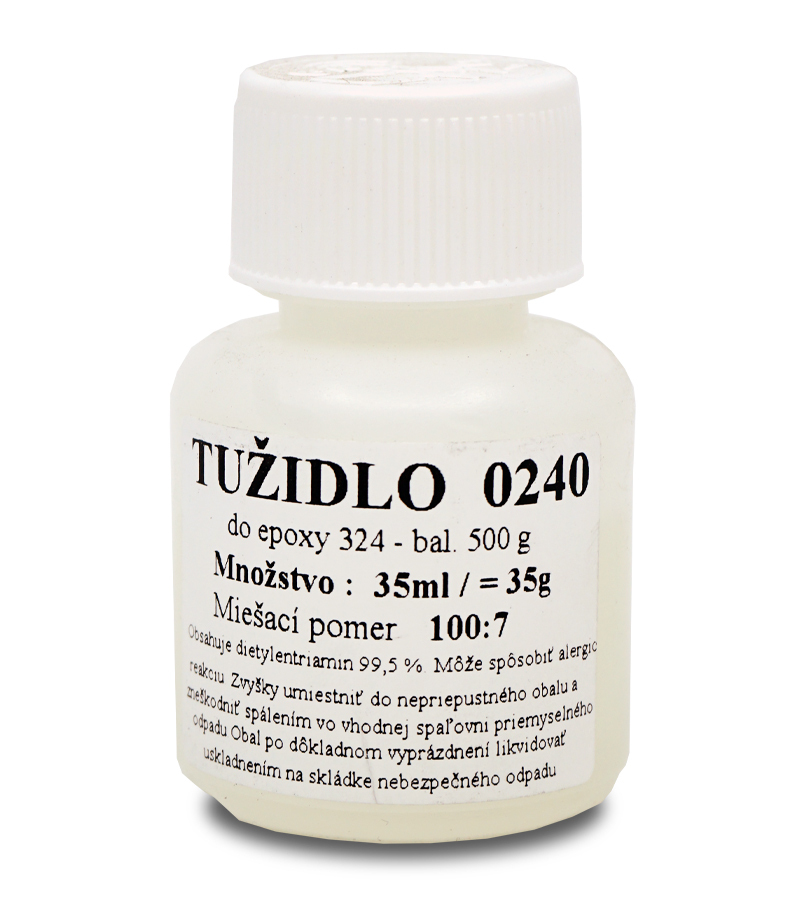 Nová dvojzložková živica neobsahujúca nebezpečné látky. Jej zloženie spĺňa najprísnejšie normy EU s dôrazom kladeným na kvalitu, bezpečnosť pri práci a hlavne ochranu životného prostredia.VlastnostiCHS EPOXY 324 je stredne molekulárna viskózna epoxidová živica modifikovaná nereaktívnym zvláčňovadlom. Vytvrdnutie sa zabezpečí zmiešaním s vhodným tužidlom(štandardne P11) pri normálnej alebo zvýšenej teplote.Zriedenie dosiahneme vyššou teplotou(napr.ponorením kelímku s chs epoxy do horúcej vody).PoužitieToto dvojzložkové epoxidové lepidlo je určené predovšetkým na lepenie, tmelenie, zalievanie, prípadne laminátovanie. Vytvrdzuje sa tužidlom P 11 a ďalším súborom tužidiel podľa druhu použitia a aplikácie. Ďalej nájde uplatnenie pri príprave lepiacich kompozíc pri lepení kovov, skla, keramiky, porcelánu, dreva a eternitu.Balenie:CHS EPOXY 324TUŹIDLO P 11Aktivátory – tužidlá sú v obsiahnuté v cene tovaru a sú ích neoddeliteľnou súčasťou.