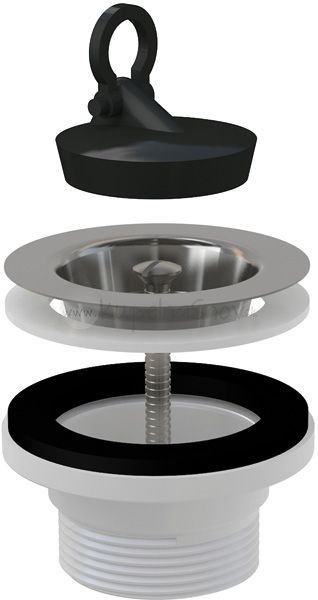 Drezová výpusť 6/4´´ s nerezovou mriežkou Ø70, zátka PVC materiál, mriežka výpuste z lešteného nerezového plechu, závit pre pripojenie k drezovému sifónu 6/4´´.