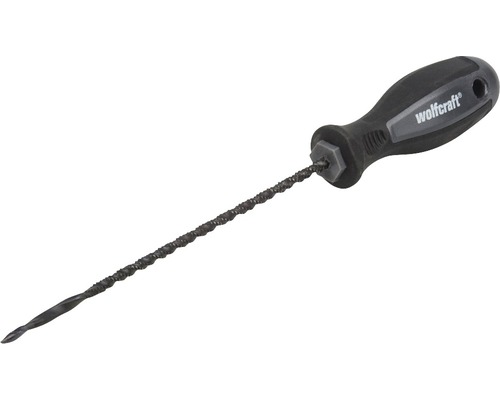 Wolfcraft pílová rašpľa na vyrezávanie otvorov a voľných tvarov do doskového materiálu ideálne na použitie na steny suchej výstavby, 5 mm Ø umožňuje rezanie malých polomerov pomocou dvojdielnej rukoväti dobré vedenie, pracovná dĺžka 175 mm, celková dĺžka 275 mm.